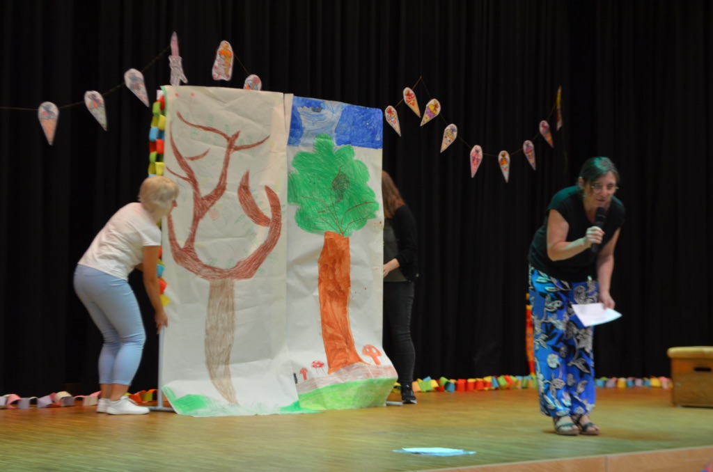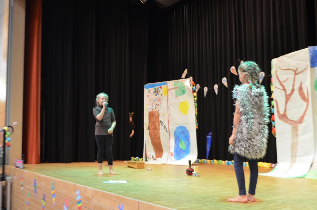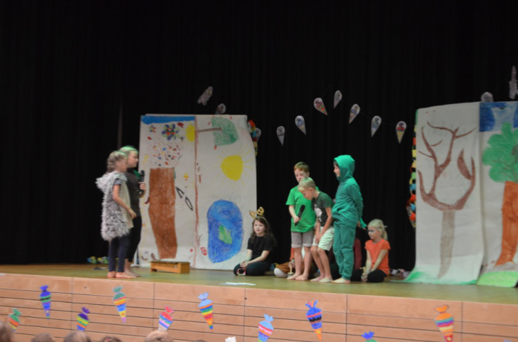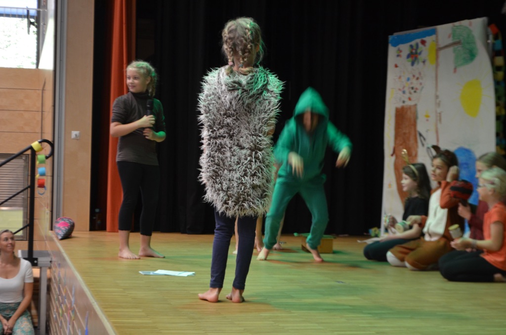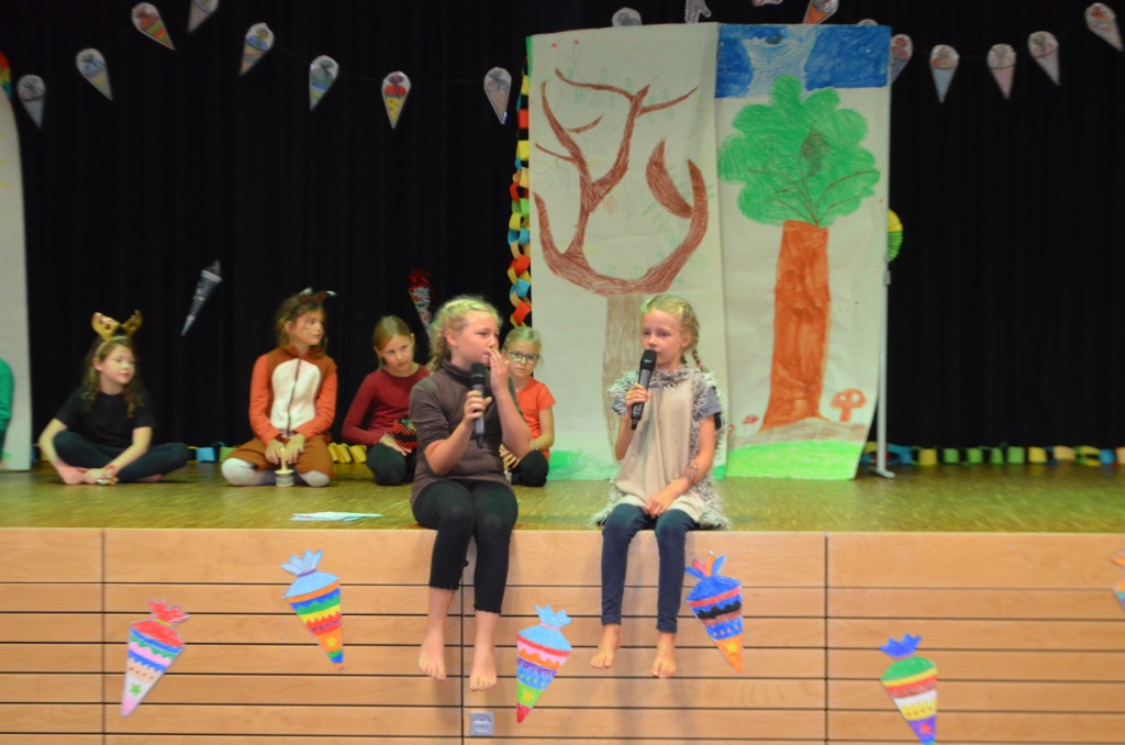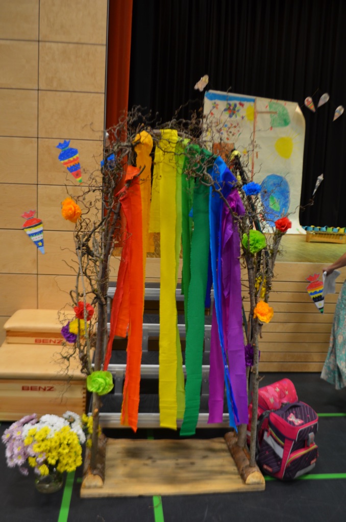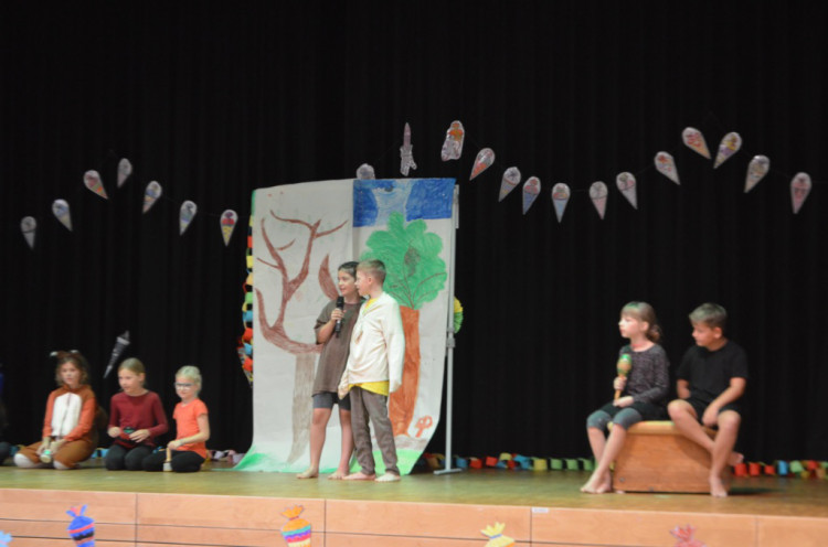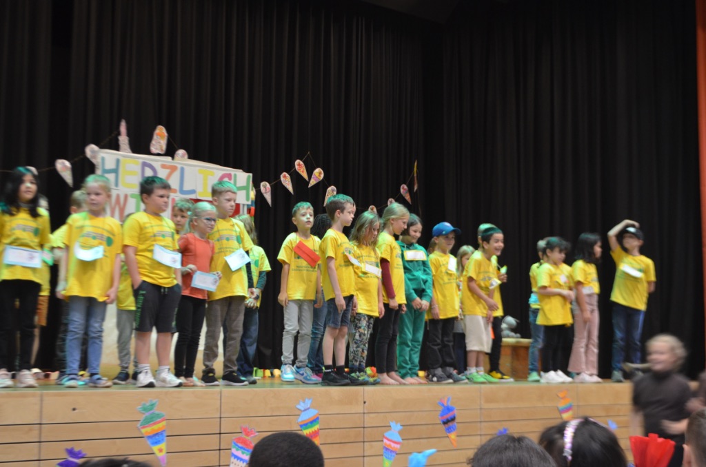 Am Freitag, den 15.9. fand die Einschulungsfeier der neuen Erstklässler:innen in der Mehrzweckhalle statt. 42 neue Schulkinder waren aufgeregt und gespannt auf ihren ersten Tag. Sie wurden mit dem Schullied „Viele kleine Leute“ von ihren Paten aus der zweiten Klassenstufe in der Buchenbrand-Grundschule begrüßt. Die Theaterprojektgruppe führte ein Stück „Das schönste auf der Welt“ auf, bevor auch Rektorin Andrea Krämer die neuen Schüler:innen herzlich begrüßte, ihnen aus ihrer eigenen Schultüte Dinge hervorzauberte, wie beispielsweise einen Ball, der für Bewegung in der Schule stehe. Bewegung war auch seit den Ferien in die Schulstruktur gekommen, denn erstmalig kamen die neuen Erstklässler:innen in jahrgangsgemischte Klassen aus erster und zweiter Klassenstufe. Ihre Paten aus Jahrgangsstufe 2 nahmen ihre neuen Mitschüler:innen auf der Bühne in den vier Lerngruppen in Empfang. JAlle freuen sich auf den gemeinsamen Weg und blicken positiv auf die Zukunft der Kinder.