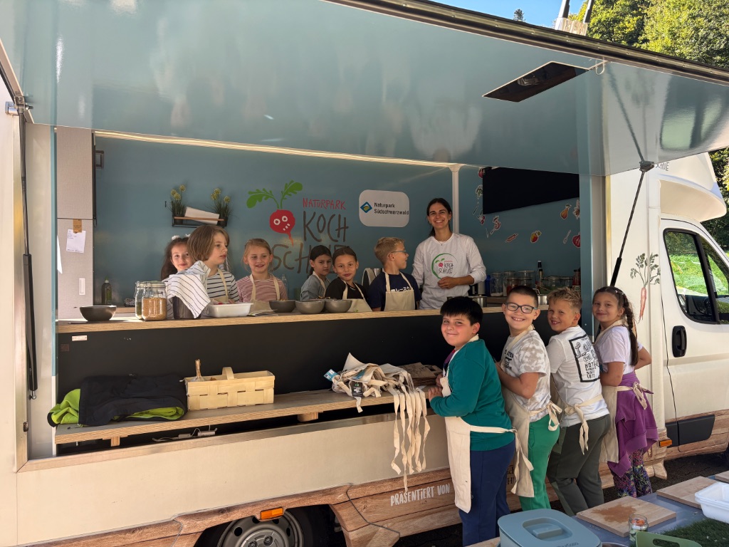 Ein besonderes Erlebnis hatten die beiden dritten Klassen der Buchenbrand-Grundschule: Die Naturpark-Kochschule war mit ihrem Foodtruck zu Besuch! Ziel des Projekts war es, den Kindern auf spielerische Weise Wissen rund um gesunde Ernährung, nachhaltige Lebensmittelverarbeitung und praktisches Kochen zu vermitteln.