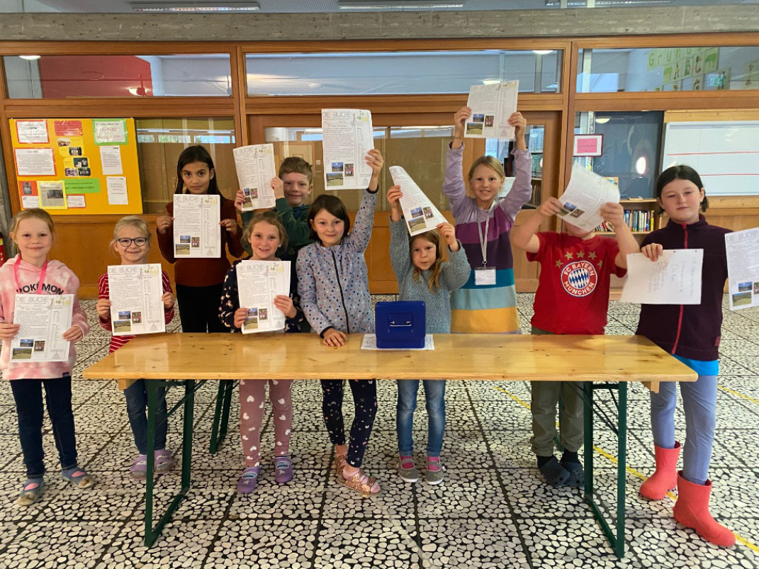 Seit dem Schuljahr 2022/23 betreiben die Kinder unserer Schule eine Schulzeitung! Seit dem Schuljahr 2023/24 gibt es sogar jeden Donnerstag Nachmittag eine Schulzeitungs- AG. Die Zeitung wird immer vor den Ferien für 20cent verkauft. Es geht um Aktuelles in unserem Schulleben, Rätsel, Witze und viele tolle Beiträge die für alle Kinder unserer Schule interessant sein könnten. Am Ende des Schuljahres gibt es dann eine besondere Ausgabe.